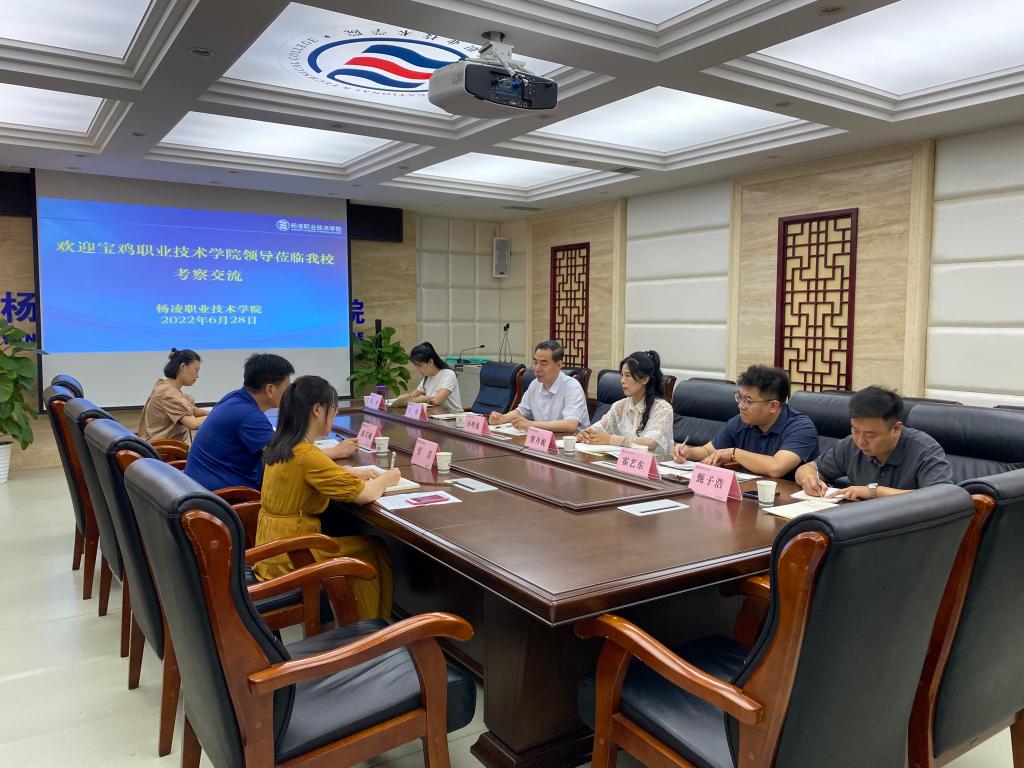 6月28日上午,宝鸡职业技术学院学生处处长孙明强一行6人来考察交流学生处处长陈军峰及相关老师座谈交流。
