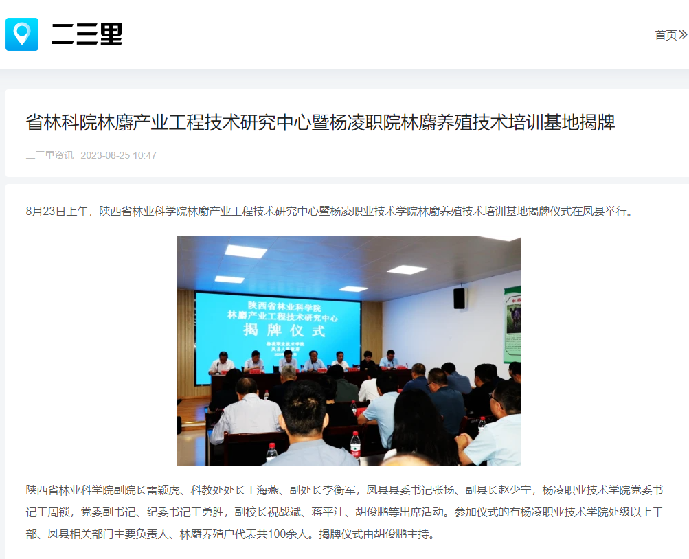 省林科院林麝产业工程技术研究中心暨杨凌职院林麝养殖技术培训基地揭牌