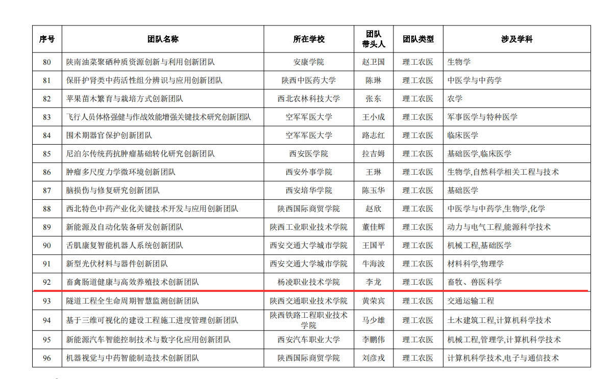 【阳光网】德赢官网Vwin畜禽肠道健康与高效养殖技术创新团队入选陕西高校青年创新团队