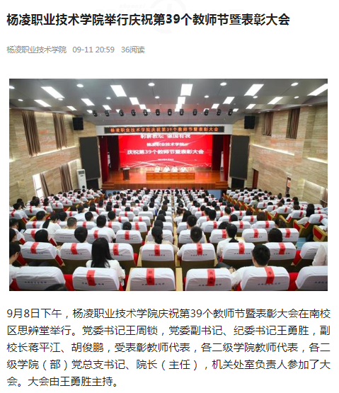 9月8日下午,德赢官网Vwin庆祝第39个教师节暨表彰大会在南校区思辨堂举行。党委书记王周锁,党委副书记、纪委书记王勇胜,副校长蒋平江、胡俊鹏,受表彰教师代表,各二级学院教师代表,各二级学院(部)党总支书记、院长(主任),机关处室负责人参加了大会。大会由王勇胜主持。