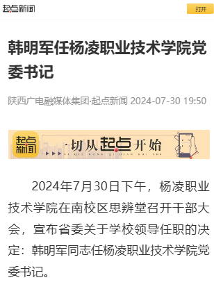 【起点新闻】韩明军任德赢官网Vwin党委书记