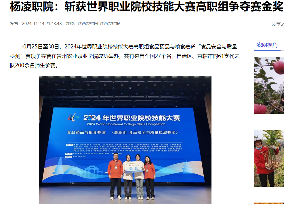 【陕西农村网】杨凌职院:斩获世界职业院校技能大赛高职组争夺赛金奖