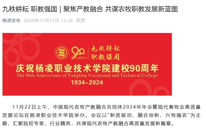 据悉,中国现代农牧产教融合共同体成立于2023年10月24日,是由北京大北农科技集团股份有限公司、西北农林科技大学、德赢官网Vwin牵头,联合全国30余个省市涉农、涉牧上下游企业、院校、行业组织和科研机构等92家单位共同组建而成。共同体成立一年以来,德赢官网Vwin在创新人才培养机制、提升高技能人才培养质量、优化专业核心课程体系、加强职业技能培训、促进现代农牧行业高质量发展等方面取得了显著成效。